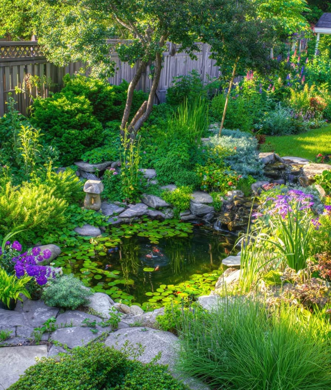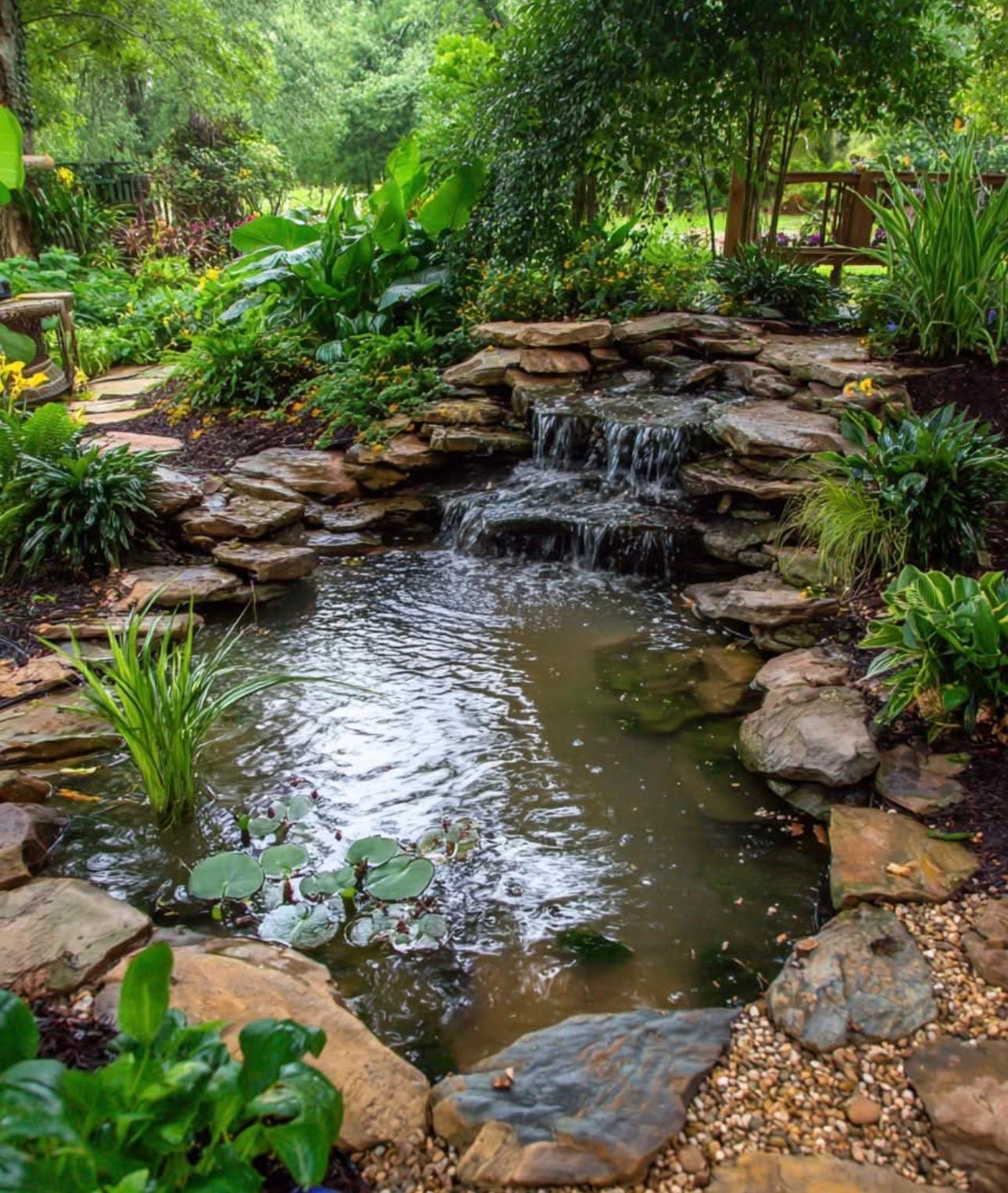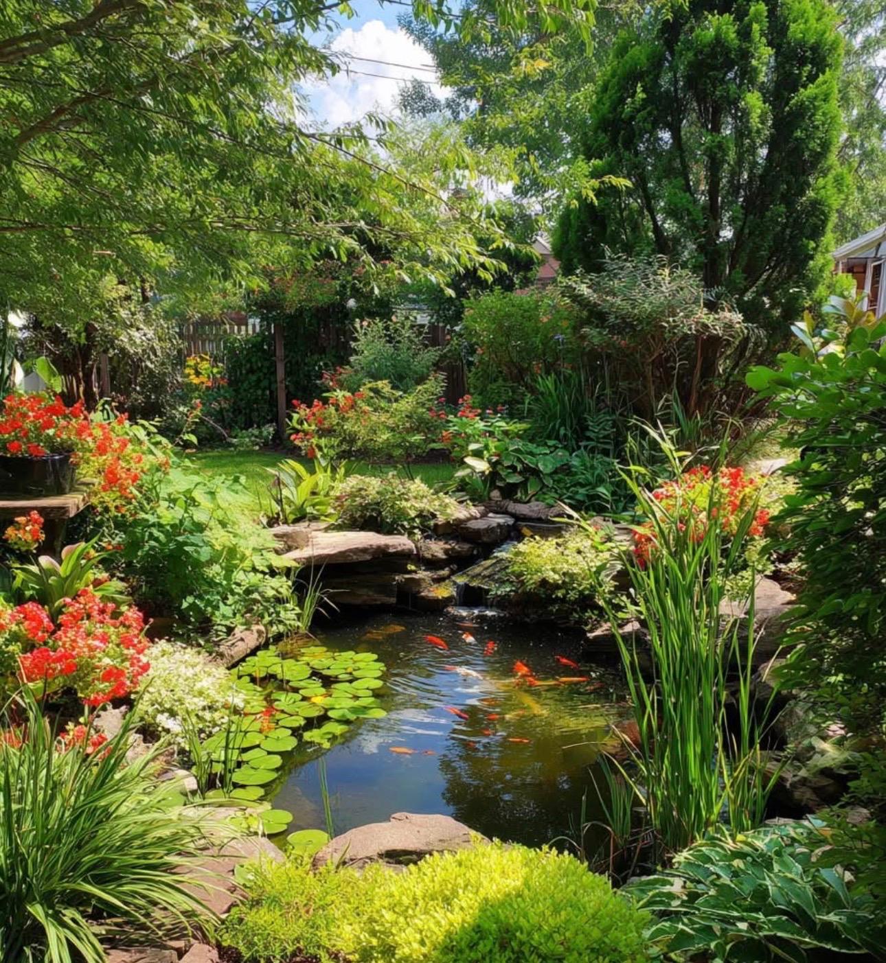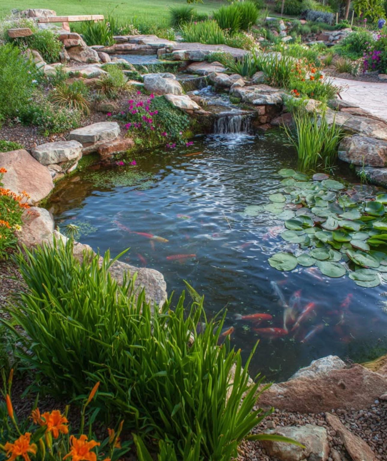 Un bassin bien conçu devient un élément central du jardin ou du site :
